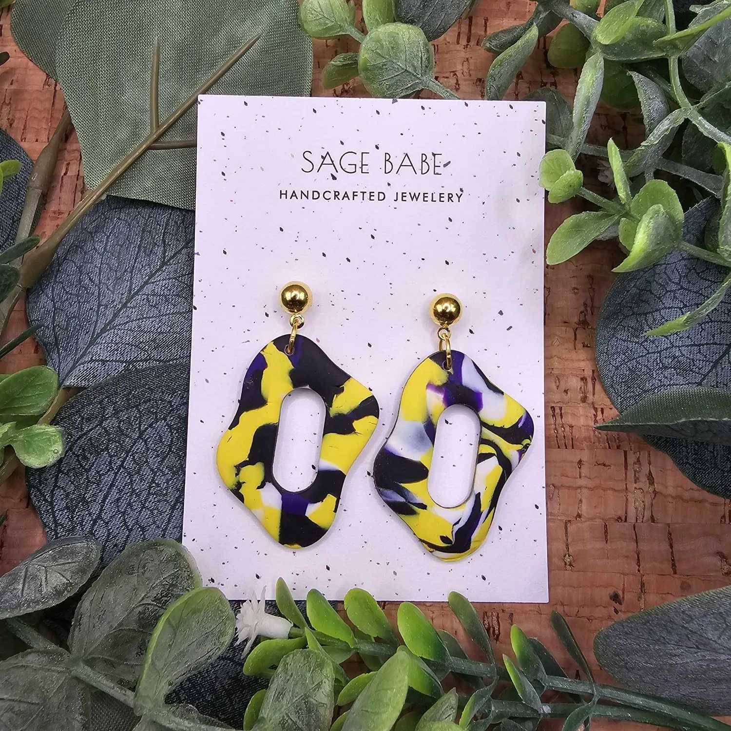 Non-Binary flag colors and translucent clay. Matte finish. Gold tone hardware, ball stud post.